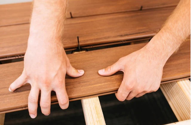 Store TruNorth Deck™ under a cover to ensure boards are clean when ready to install. If stored outdoors, they must be covered with a tarp designed for outside use. Products should be stored in a dry space with bottom supports equally spread apart. For long term storage, products should be banded together.